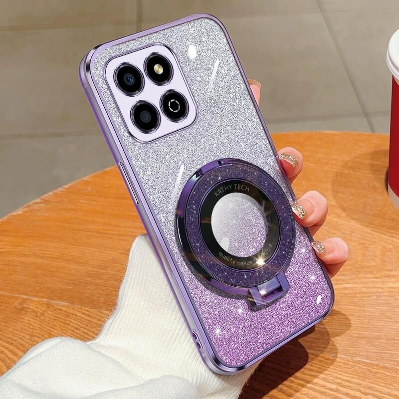 Για Honor X8 5G / Play 30M Plated Gradient Glitter Γύρος κάτοχος TPU τηλέφωνο υπόθεση (μωβ)