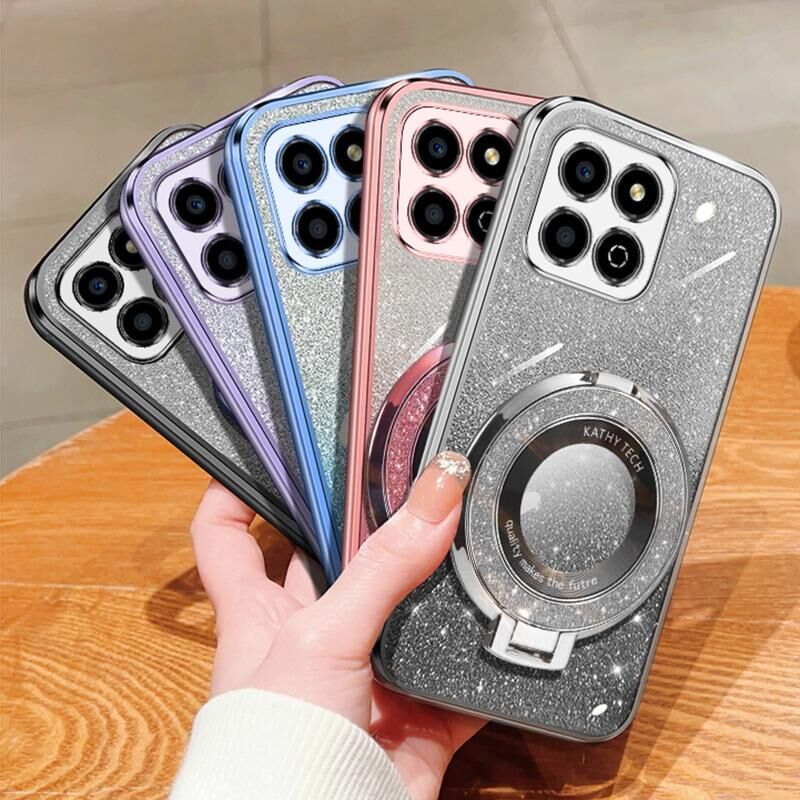 Για Honor X8 5G / Play 30M Plated Gradient Glitter Γύρος κάτοχος TPU τηλέφωνο υπόθεση (Sierra Blue)