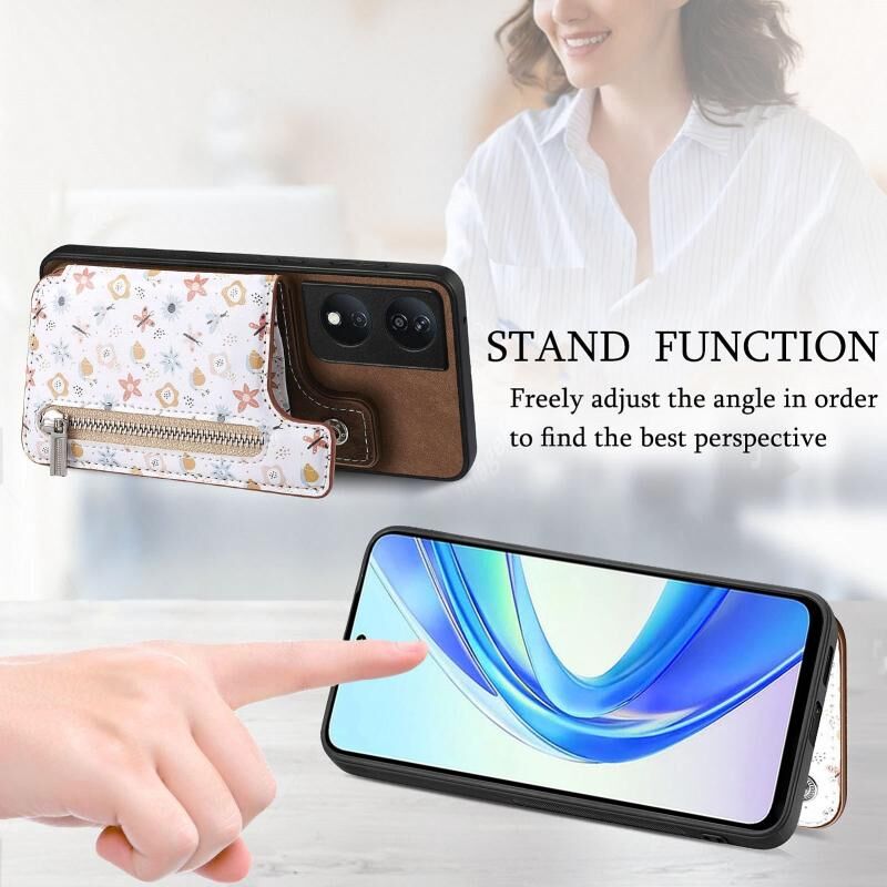 Θήκη κινητού τηλεφώνου με φερμουάρ και σχέδιο retro για Honor X8 5G (Καφέ)