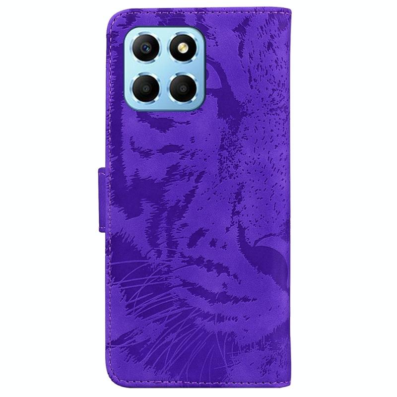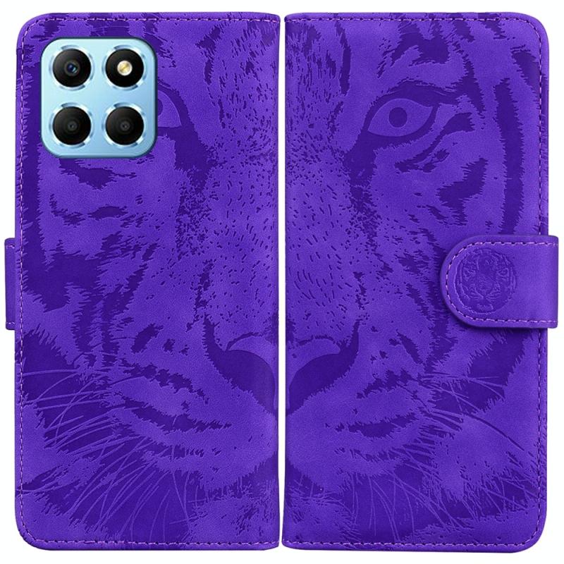 Θήκη τηλεφώνου δερμάτινη με ανάγλυφο μοτίβο τίγρης για Honor X8 5G (Μωβ)