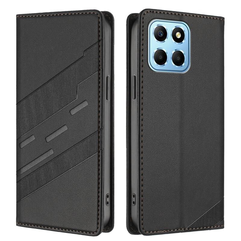 Θήκη τηλεφώνου από δέρμα retro, πολυλειτουργική με πορτοφόλι, ανάγλυφη για Honor X8 5G / X6 4G / 70 Lite (Μαύρο)
