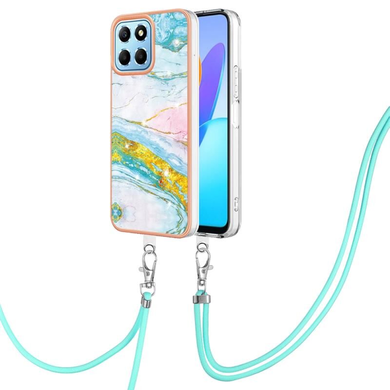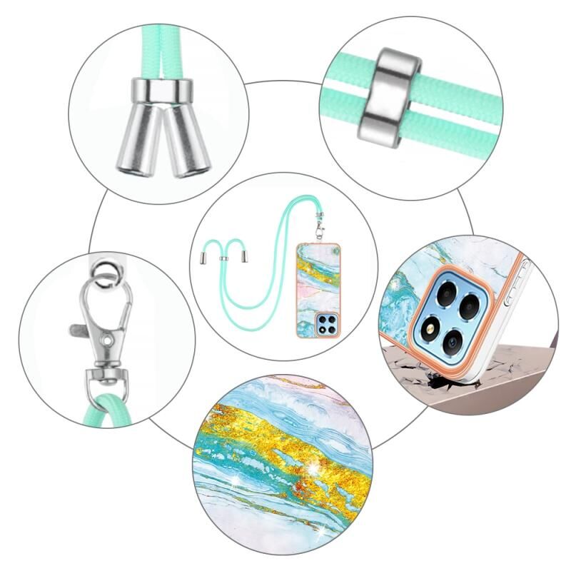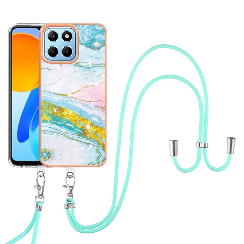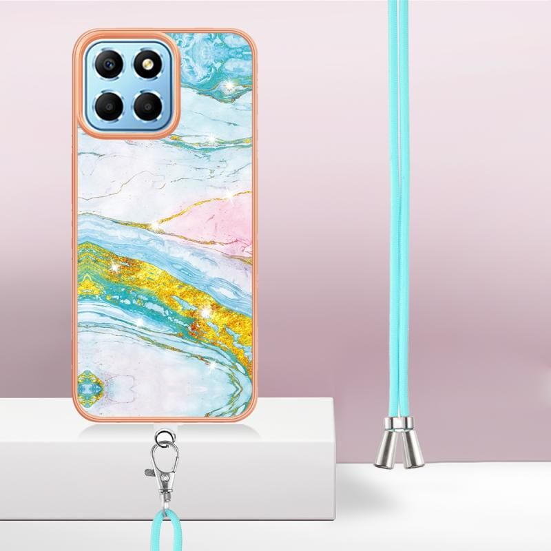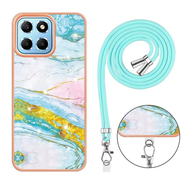 For Honor X8 5G / X6 4G Electroplating Marble Dual-side IMD Phone Case with Lanyard(Green 004)