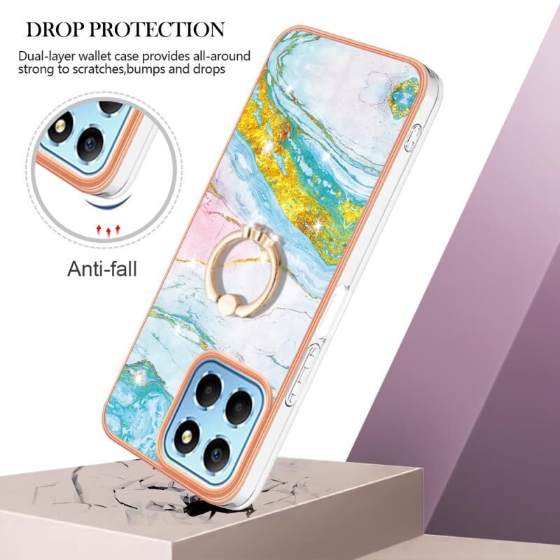 Θήκη κινητού τηλεφώνου για Honor X8 5G / X6 4G με Ηλεκτρολυτική επικάλυψη, σχέδιο Μάρμαρου IMD, από TPU με Δακτύλιο Στήριξης (Λευκό 006)