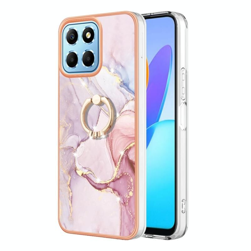 Θήκη κινητού τηλεφώνου για Honor X8 5G / X6 4G με Ηλεκτρολυτική επικάλυψη, σχέδιο Μάρμαρου IMD, από TPU με Δακτύλιο Στήριξης (Λευκό 006)