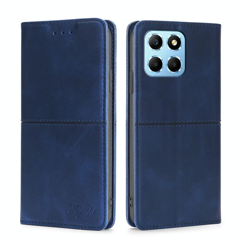 Θήκη τηλεφώνου από δέρμα με μαγνητικό κλείσιμο, οριζόντια αναδιπλούμενη, με υφή αγελάδας για Honor X8 5G/X6 (Μπλε)