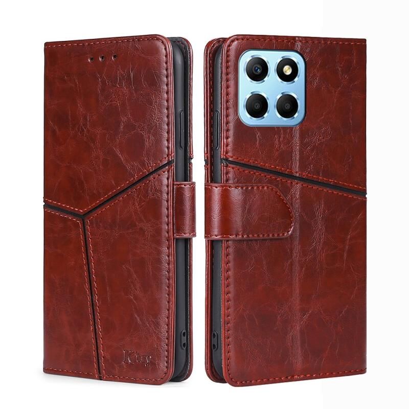 Για Honor X8 5G / X6 Γεωμετρική ραφή οριζόντια Flip δερμάτινη θήκη τηλεφώνου (σκούρο καφέ)