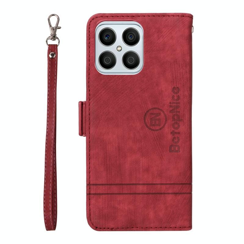 Για το Honor X8 BETOPNICE Διπλής όψης δερμάτινη θήκη τηλεφώνου με αγκράφα (κόκκινο) (BETOPNICE)