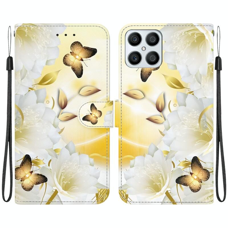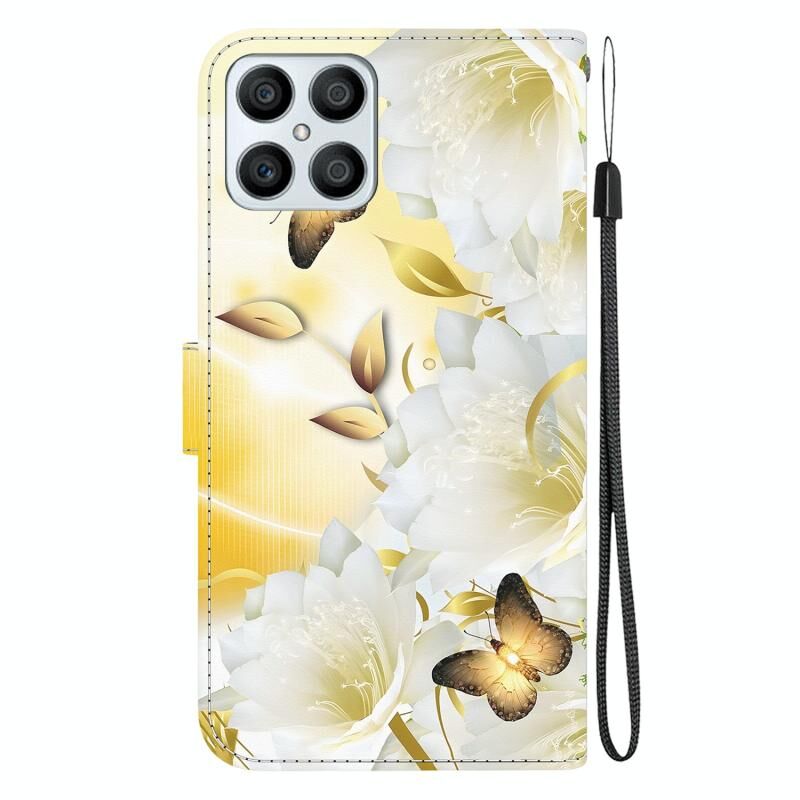 Θήκη τηλεφώνου από δέρμα με σχέδιο και υφή κρυστάλλου για Honor X8 (Μωβ Παιώνια)