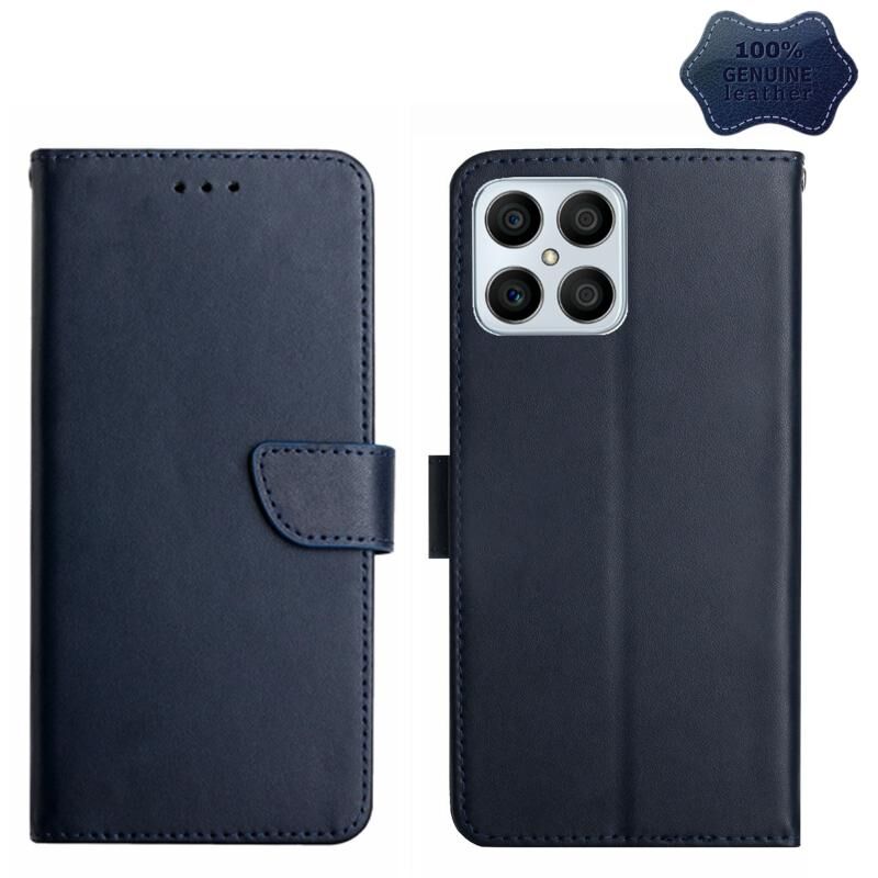 Θήκη τηλεφώνου οριζόντιας αναδίπλωσης από γνήσιο δέρμα για Honor X8, ανθεκτική στα δακτυλικά αποτυπώματα (Μπλε)