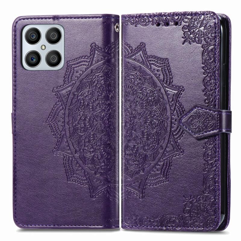 Για Honor X8 Mandala λουλούδι ανάγλυφο οριζόντια Flip δερμάτινη θήκη τηλεφώνου (μωβ)
