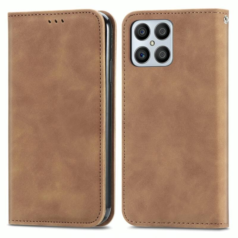 Για Honor X8 Ρετρό δέρμα αίσθηση μαγνητικό δέρμα τηλέφωνο υπόθεση (Καφέ)