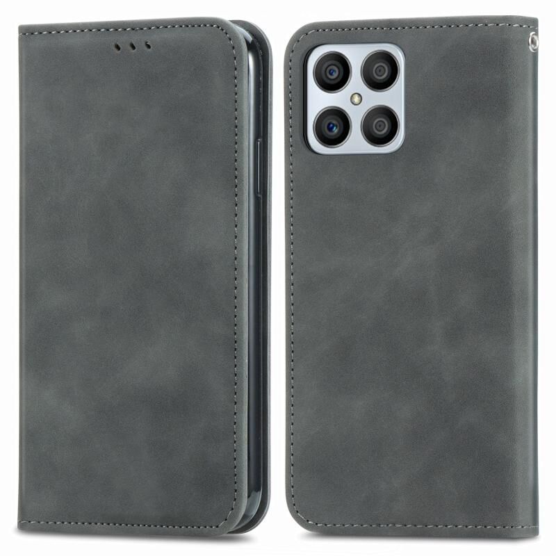 Για Honor X8 Ρετρό δέρμα αίσθηση μαγνητικό δέρμα τηλέφωνο υπόθεση (Γκρι)