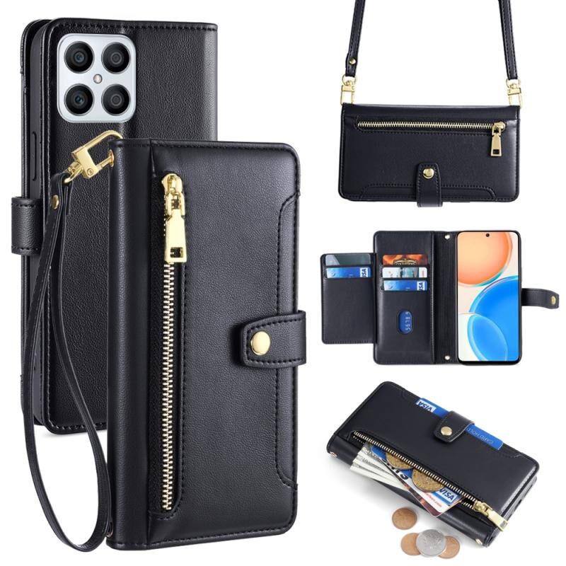 Για Honor X8 Πρόβατα Υφή Cross-body φερμουάρ πορτοφόλι δερμάτινη θήκη τηλεφώνου (μαύρο)