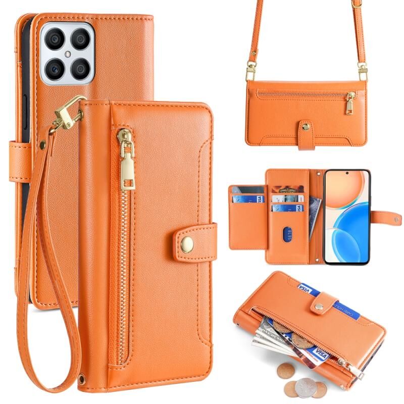 Για Honor X8 Πρόβατα Υφή Cross-body φερμουάρ πορτοφόλι δερμάτινη θήκη τηλεφώνου (πορτοκαλί)
