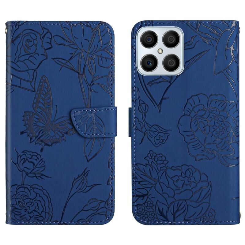 Θήκη τηλεφώνου από δέρμα με ανάγλυφο σχέδιο πεταλούδας και παιώνιας για Honor X8 (Κόκκινο)