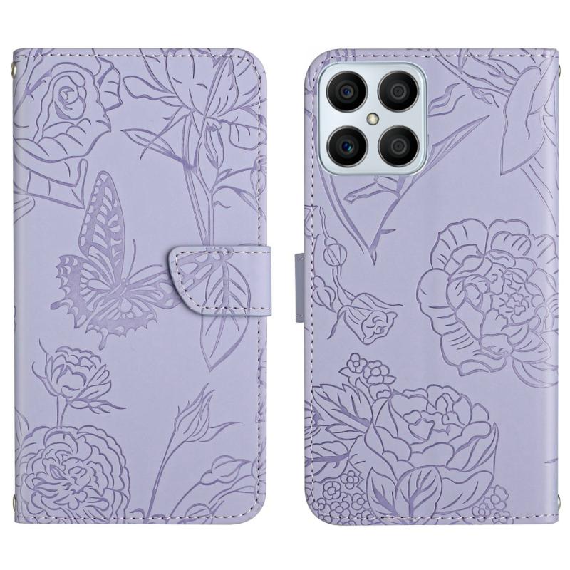 Θήκη τηλεφώνου από δέρμα με ανάγλυφο σχέδιο πεταλούδας και παιώνιας για Honor X8 (Κόκκινο)