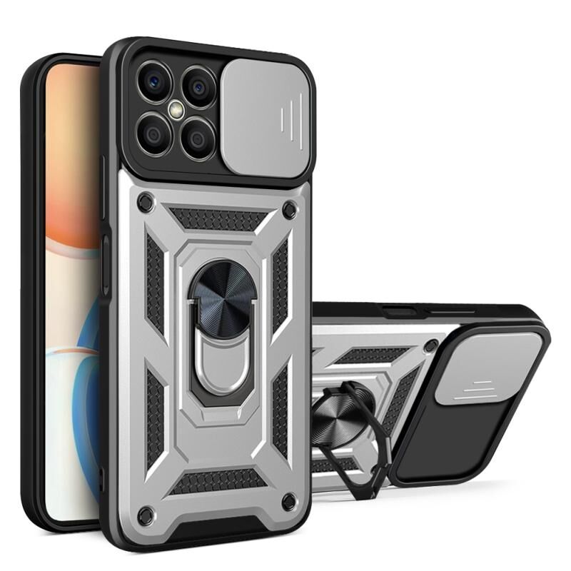 Για Honor X8 συρόμενη κάμερα Σχεδιασμός TPU + PC τηλέφωνο υπόθεση (ασημί)