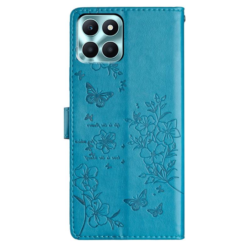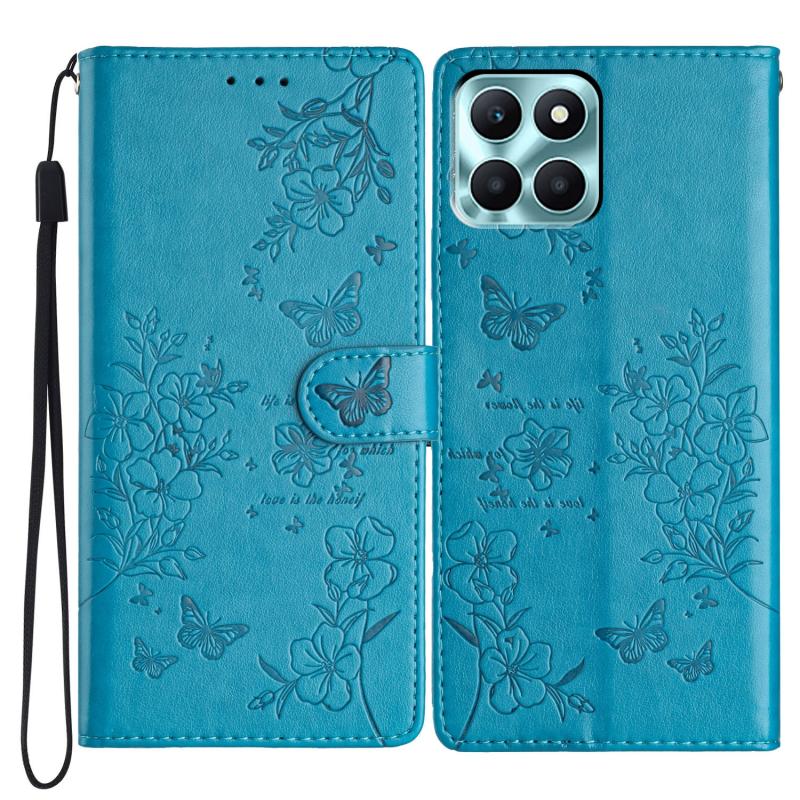 For Honor X8 / X30i Butterflies And Flowers Leather Phone Case(Blue)