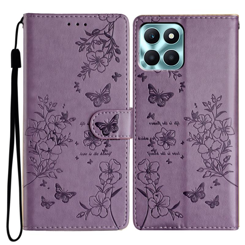 For Honor X8 / X30i Butterflies And Flowers Leather Phone Case(Purple)