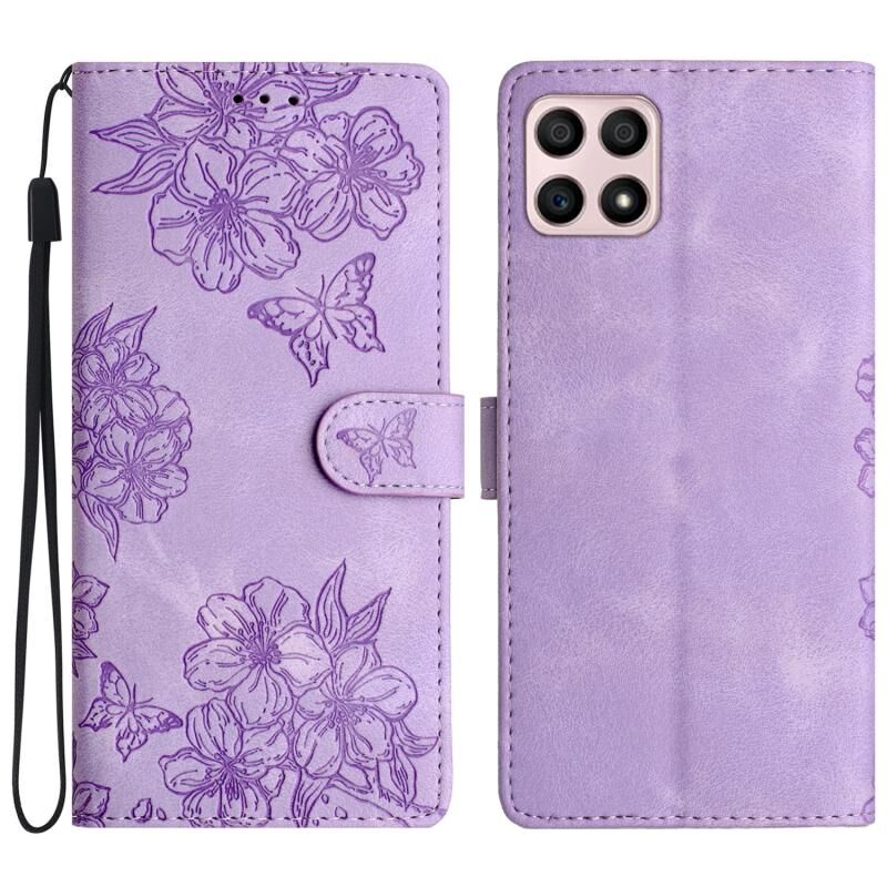 Θήκη τηλεφώνου Honor X8 / X30i με ανάγλυφο PU δέρμα Cherry Blossom Butterfly (Κόκκινο)