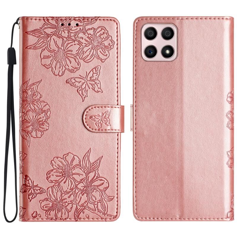Θήκη τηλεφώνου Honor X8 / X30i με ανάγλυφο PU δέρμα Cherry Blossom Butterfly (Κόκκινο)