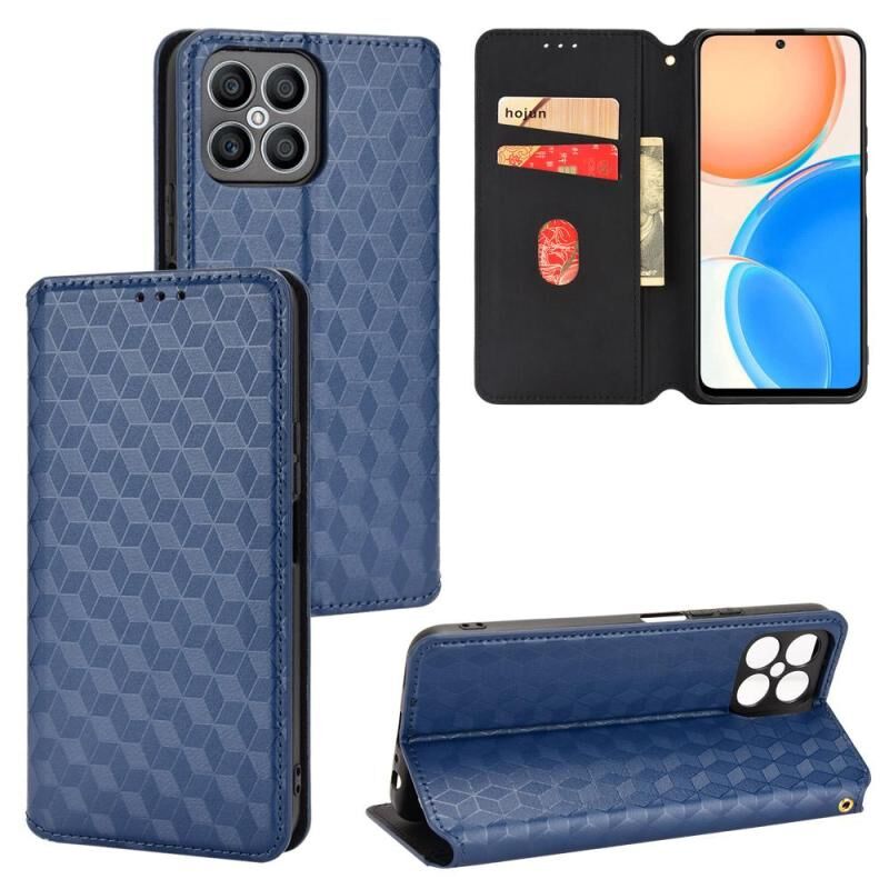 Θήκη τηλεφώνου από δέρμα με ανάγλυφη υφή κυβικού πλέγματος για Honor X8 / X30i (Μαύρο)