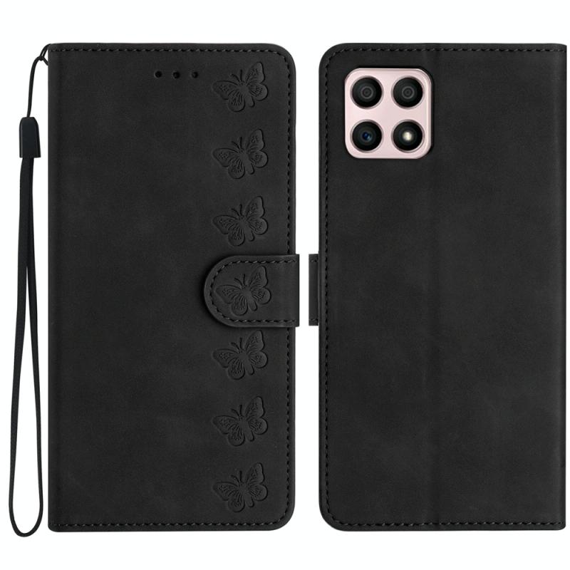 Θήκη τηλεφώνου από δέρμα με ανάγλυφα επτά πεταλούδες για Honor X8 / X30i (Μαύρο)