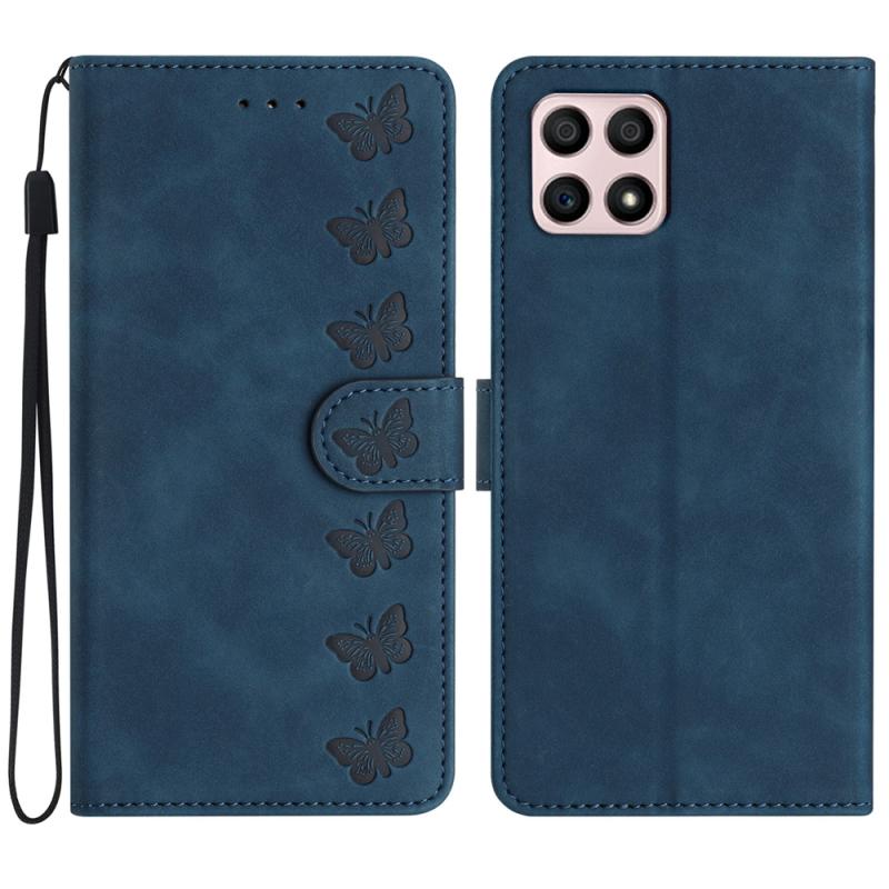 Θήκη τηλεφώνου από δέρμα με ανάγλυφα επτά πεταλούδες για Honor X8 / X30i (Μπλε)