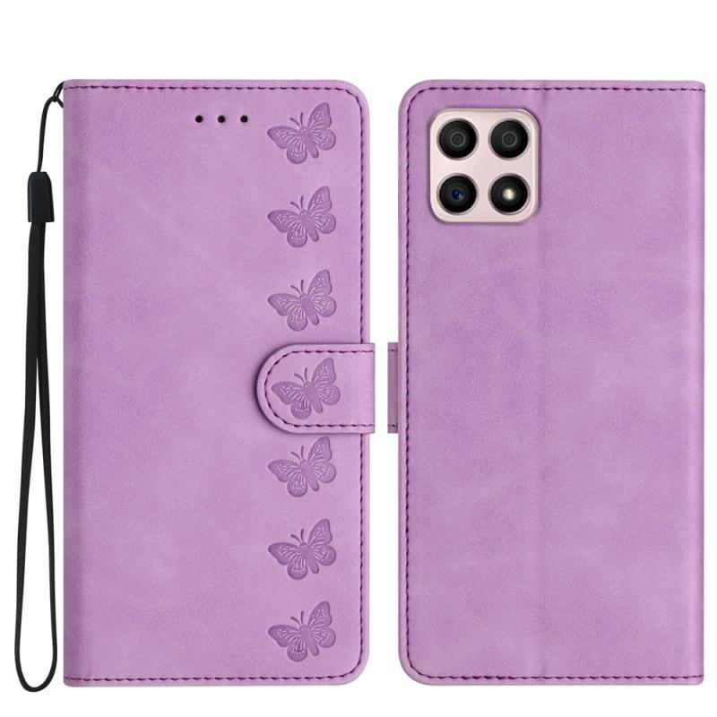 Θήκη τηλεφώνου από δέρμα με ανάγλυφα επτά πεταλούδες για Honor X8 / X30i (Μωβ)