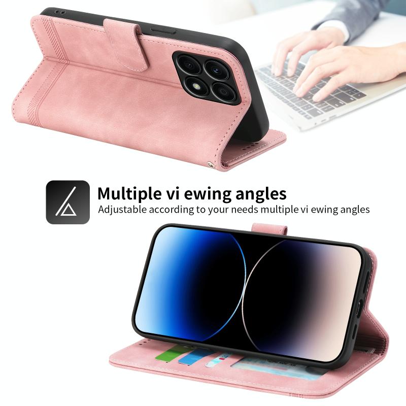 For Honor X8a 4G Dierfeng Dream Line TPU Hybrid PU Leather Phone Case(Pink)