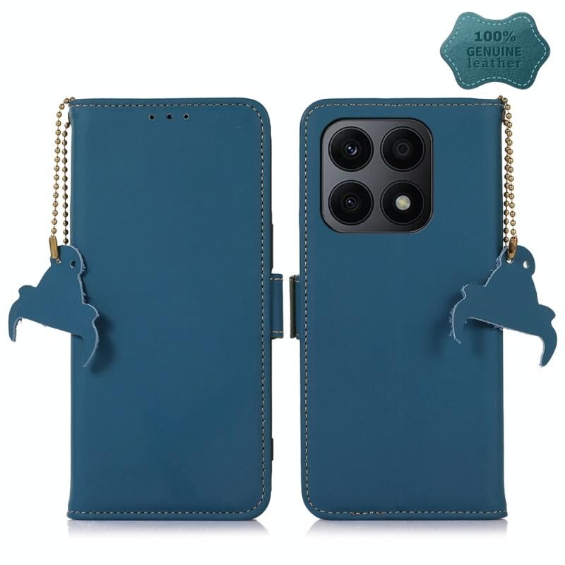 Θήκη τηλεφώνου από γνήσιο δέρμα με μαγνητικό κλείσιμο και προστασία RFID για Honor X8a 4G (Μπλε)