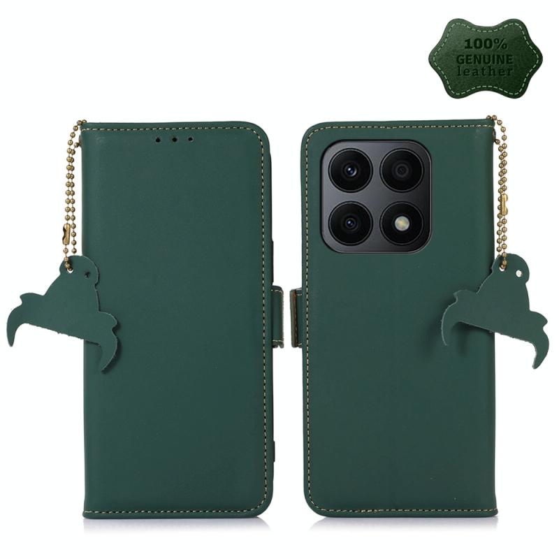 Θήκη τηλεφώνου από γνήσιο δέρμα με μαγνητικό κλείσιμο και προστασία RFID για Honor X8a 4G (πράσινο)