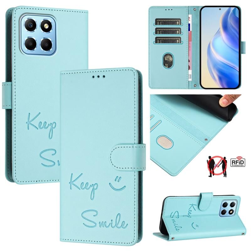 Θήκη τηλεφώνου δερμάτινη με ανάγλυφο "Global Smile" και τεχνολογία RFID για Honor X8a 5G (Μέντας Πράσινο)