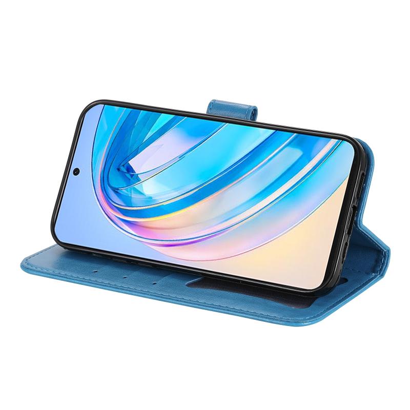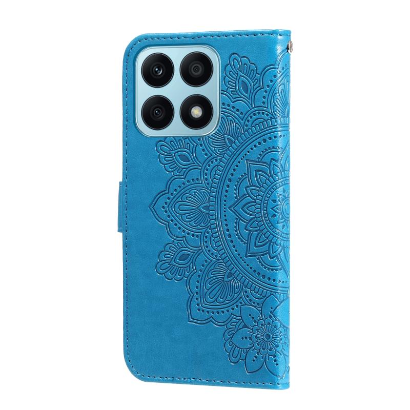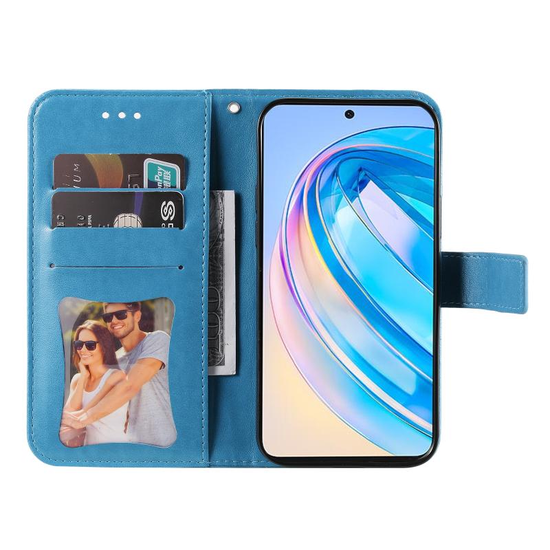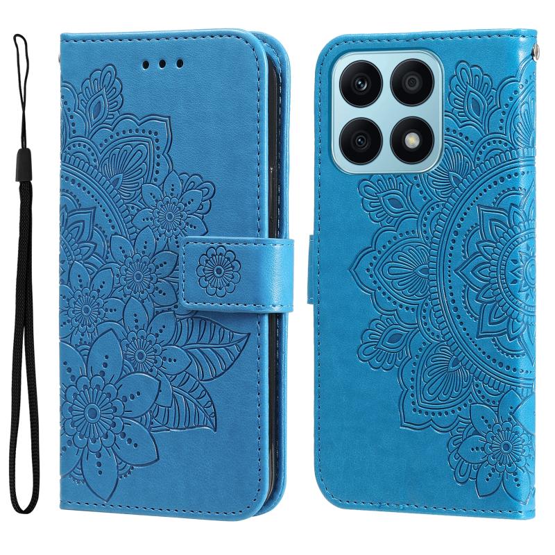 Θήκη τηλεφώνου Honor X8a από δέρμα με ανάγλυφα 7 πέταλα λουλουδιών (Μπλε)