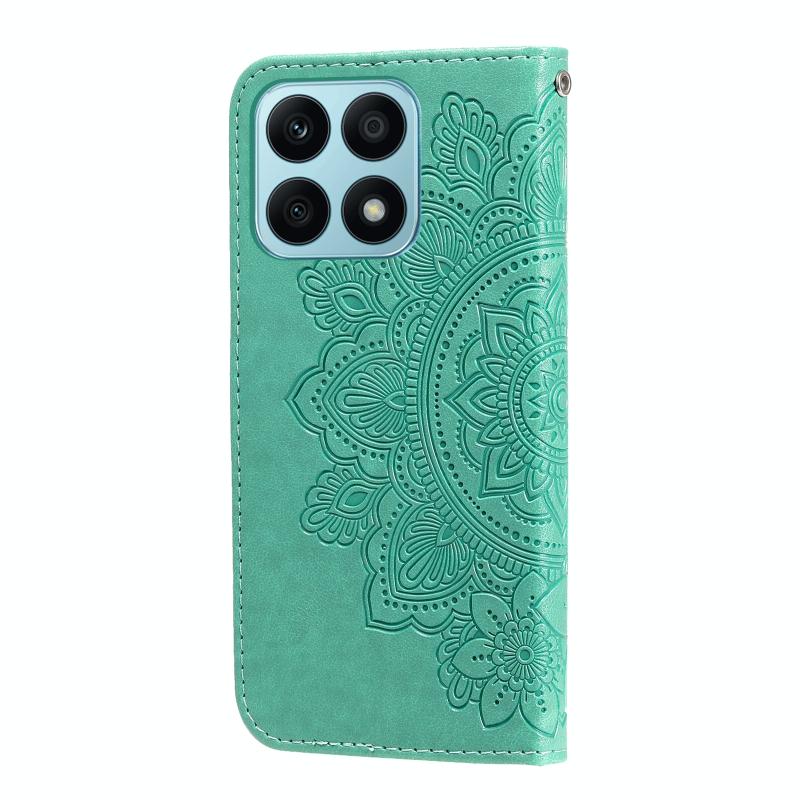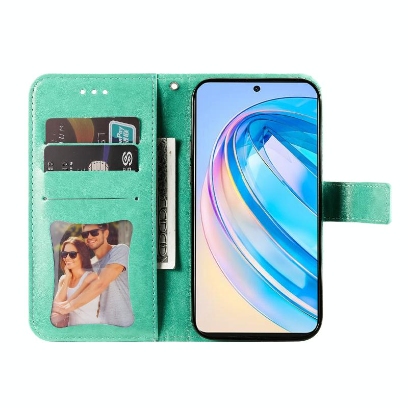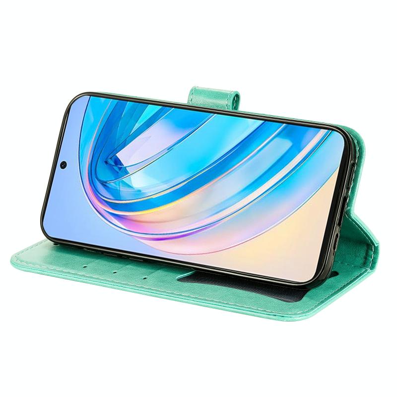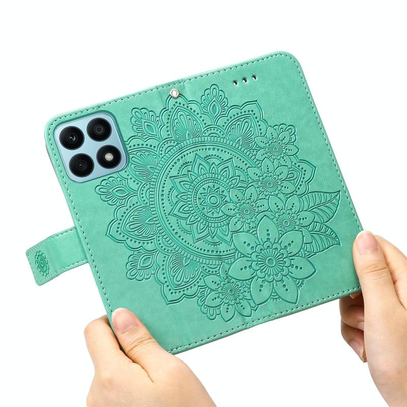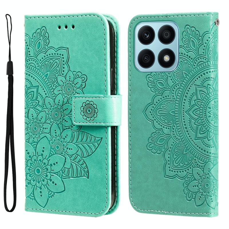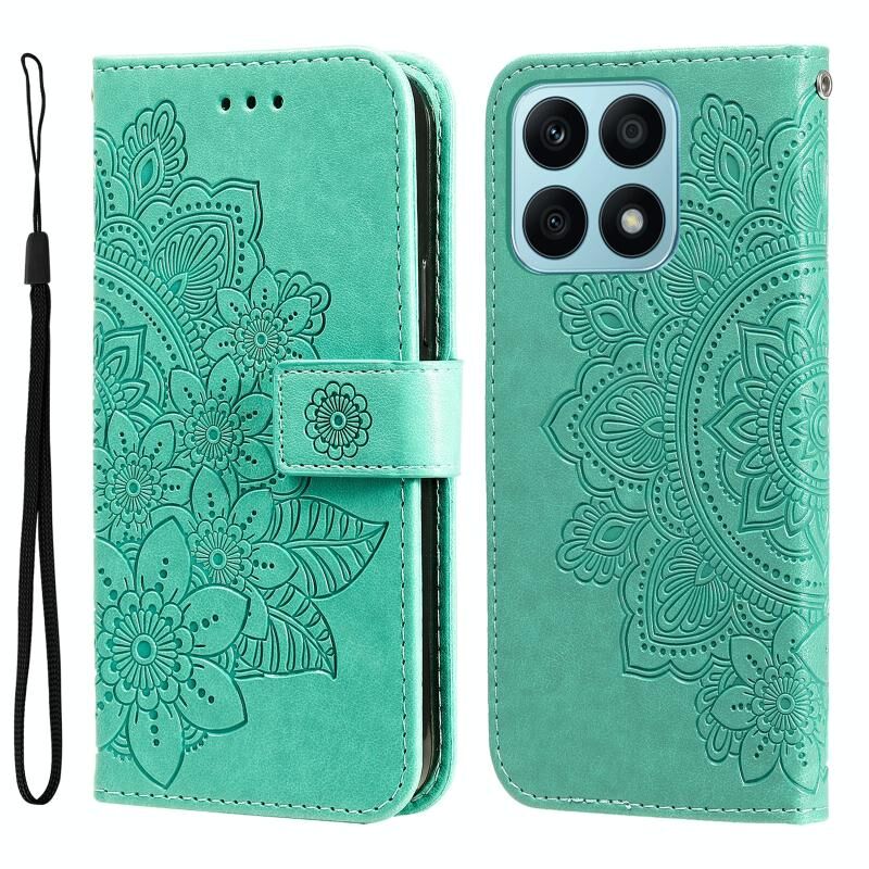 Θήκη τηλεφώνου Honor X8a από δέρμα με ανάγλυφα 7 πέταλα λουλουδιών (πράσινο)