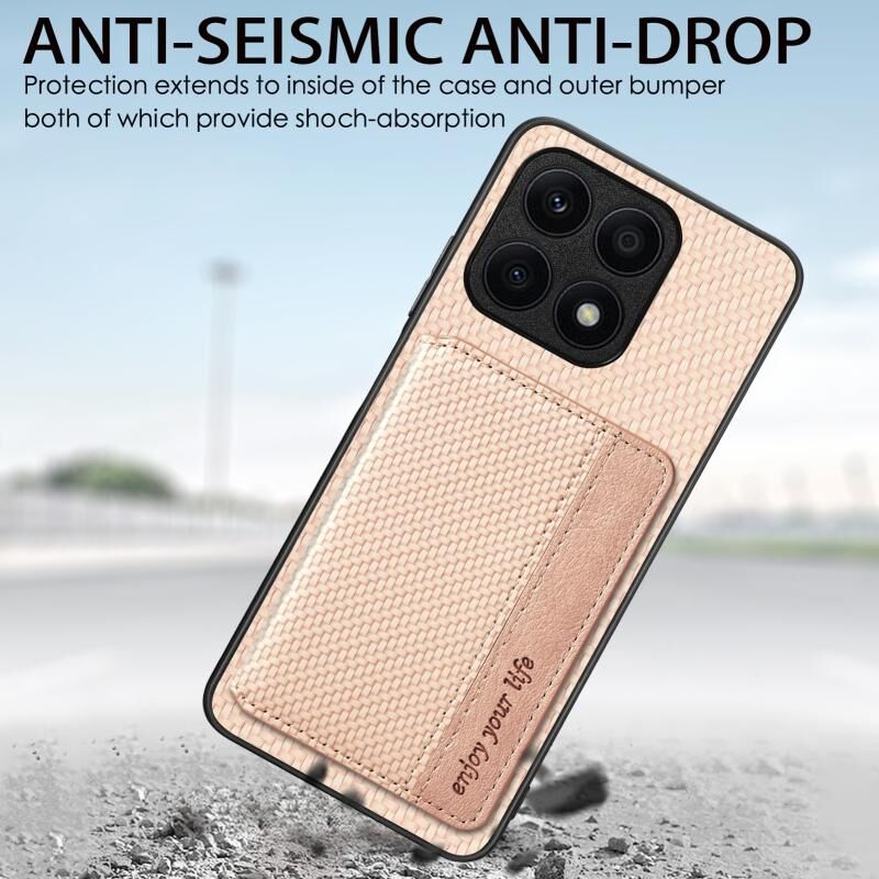 Θήκη τηλεφώνου για Honor X8A από ανθρακονήματα με μαγνητικό πορτοφόλι καρτών (πράσινο)