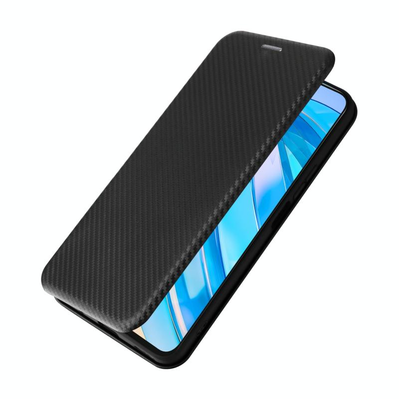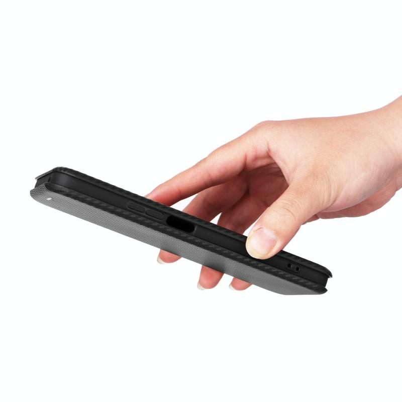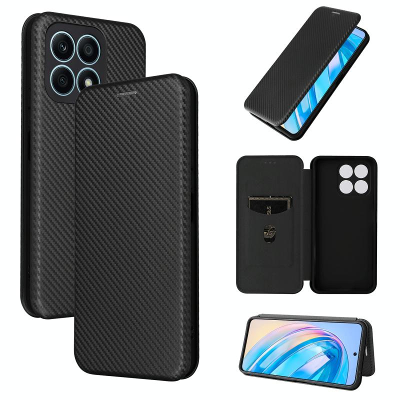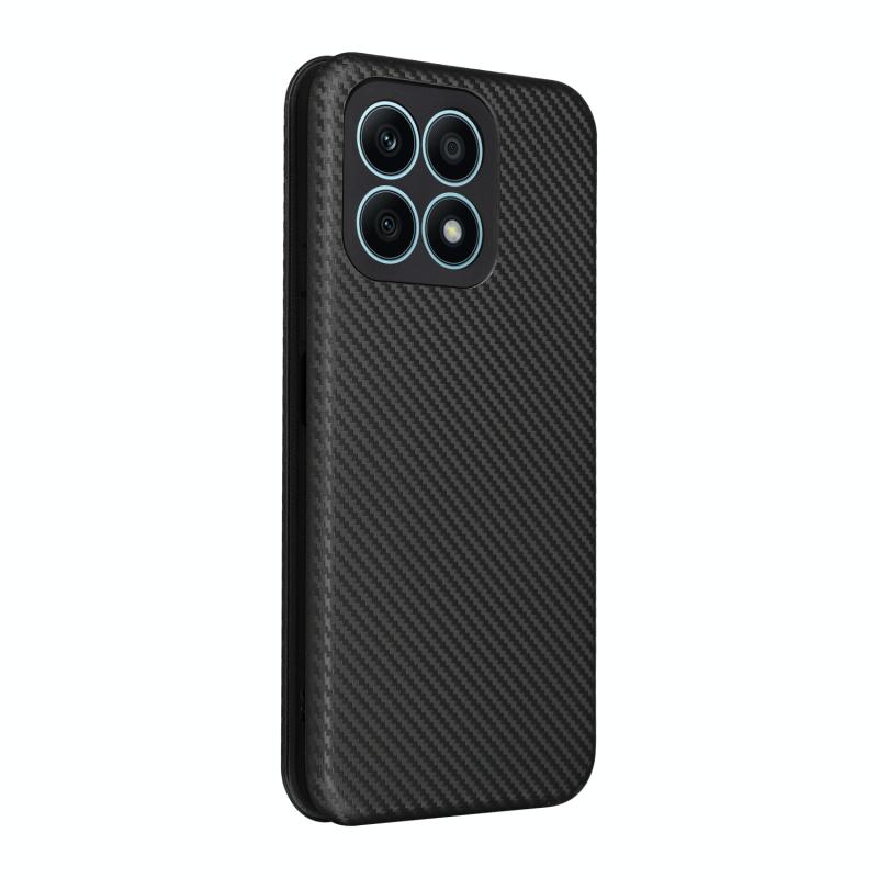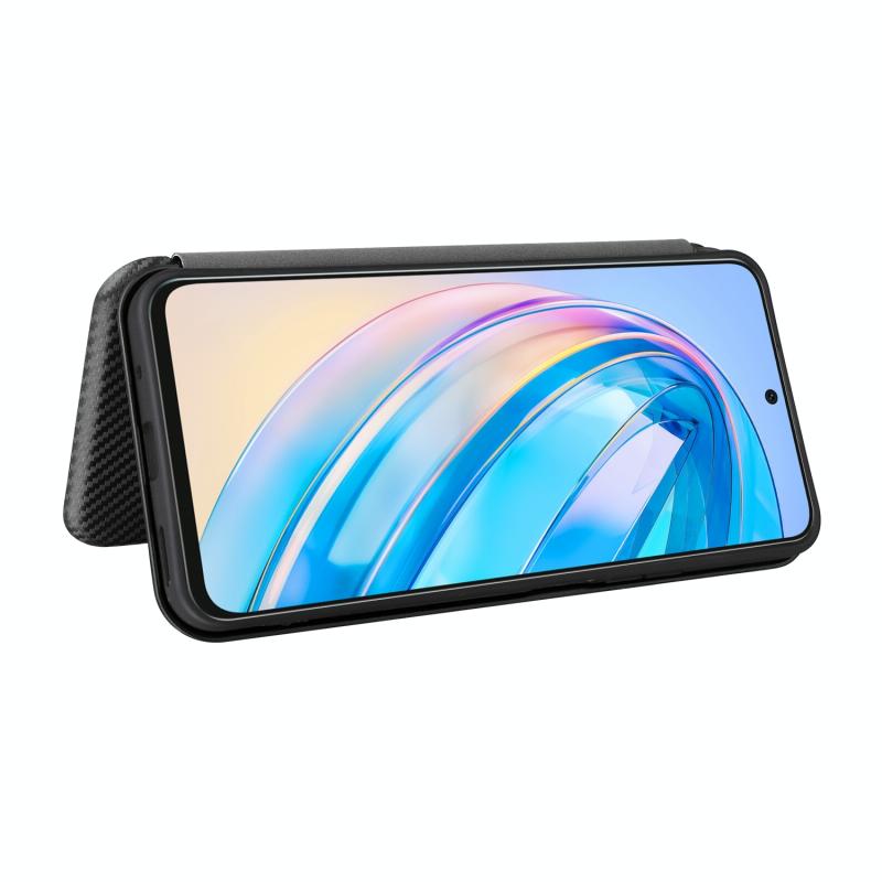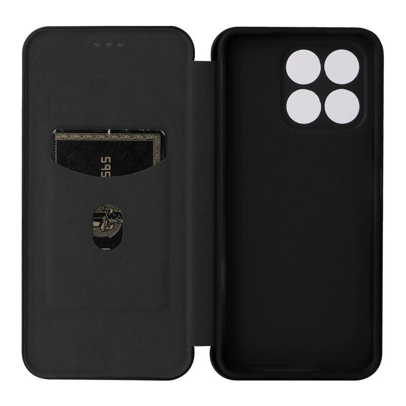 Θήκη τηλεφώνου από δέρμα με υφή ανθρακονήματος για Honor X8a (Μαύρο)