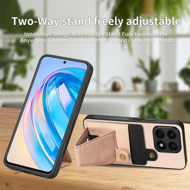 For Honor X8A Carbon Fiber Wallet Flip Card K-shaped Holder Phone Case(Khaki)