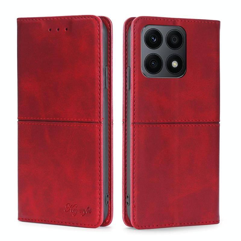 Θήκη τηλεφώνου από δέρμα με μαγνητικό κλείσιμο, οριζόντια αναδιπλούμενη, με σχέδιο αγελάδας για Honor X8A (Κόκκινο)