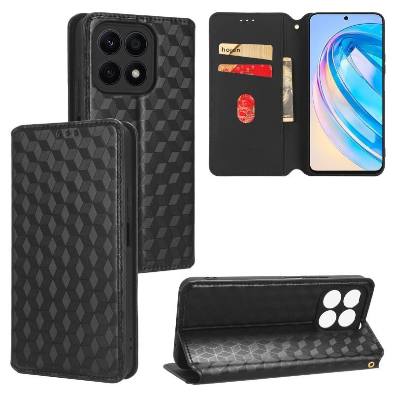 Θήκη τηλεφώνου Honor X8a Cubic Grid Texture Flip από δέρμα (Μαύρο)