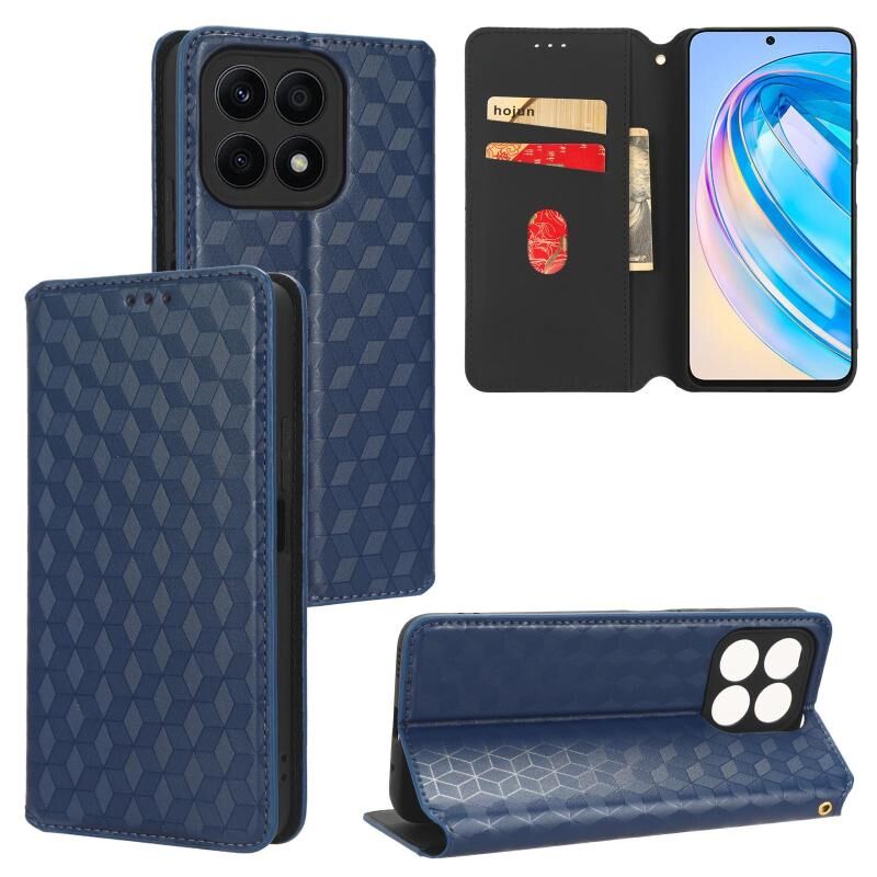 Θήκη τηλεφώνου Honor X8a Cubic Grid Texture Flip από δέρμα (Μαύρο)