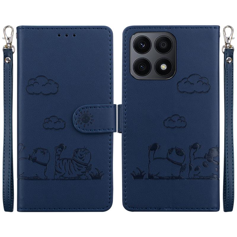 Θήκη τηλεφώνου από δέρμα RFID για Honor X8a, με χαριτωμένες γάτες (Μωβ)