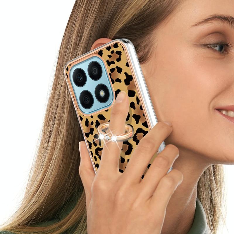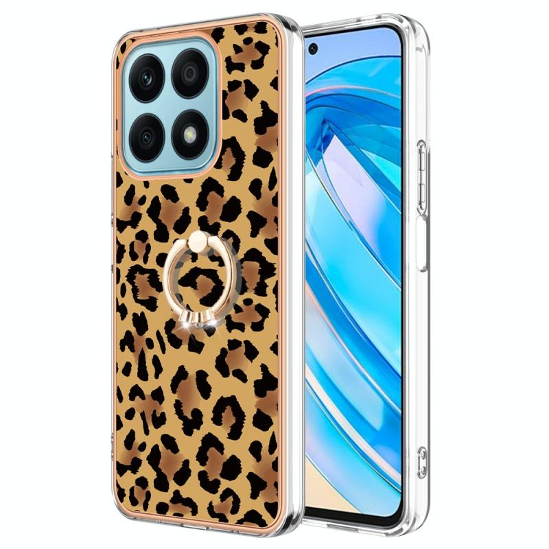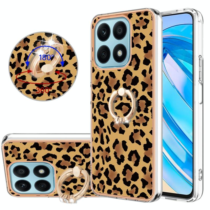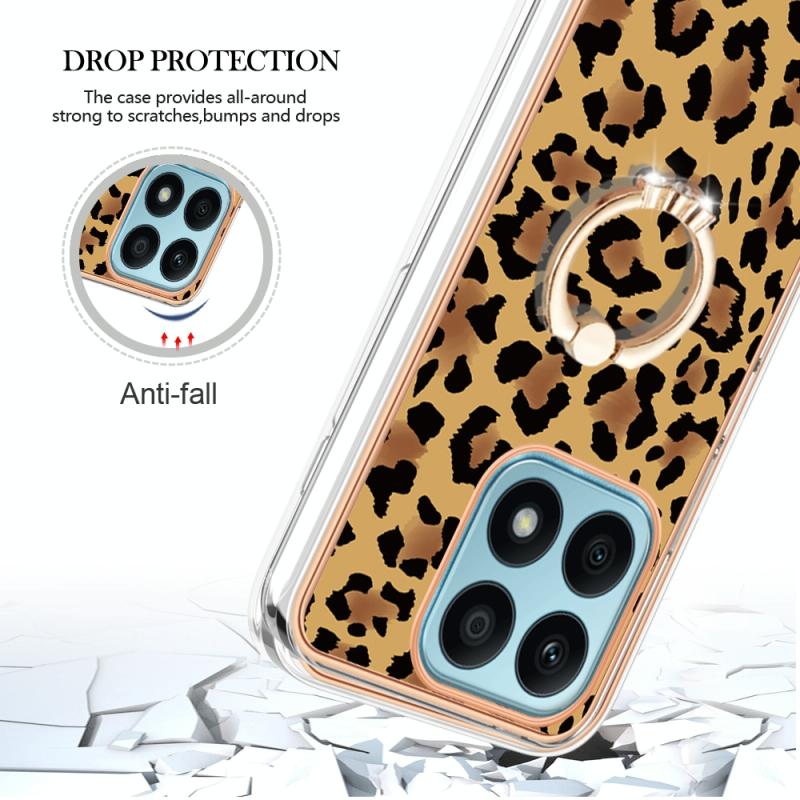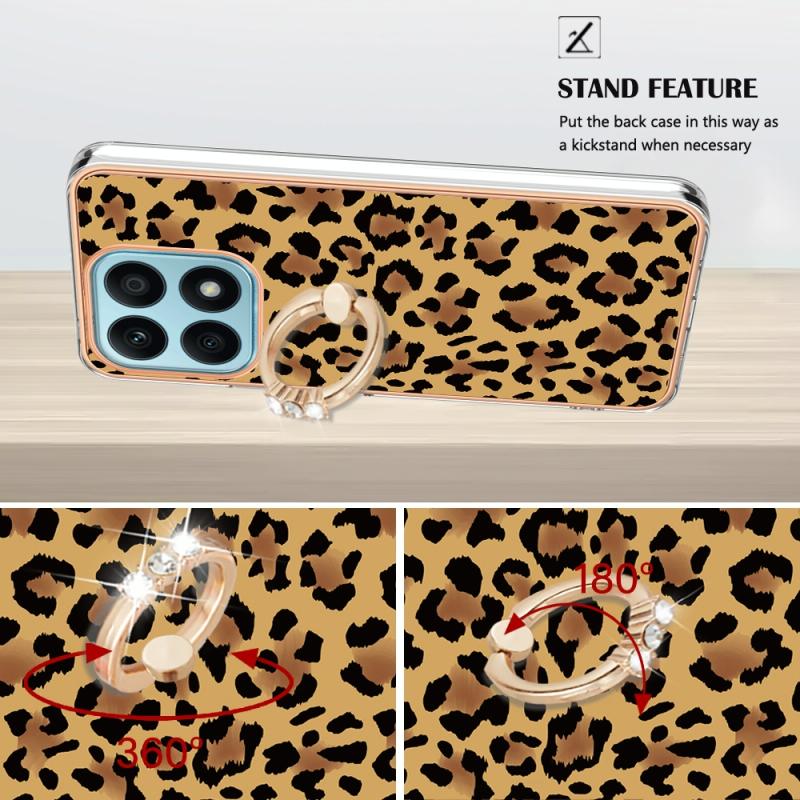 For Honor X8a Electroplating Dual-side IMD Phone Case with Ring Holder(Leopard Print)
