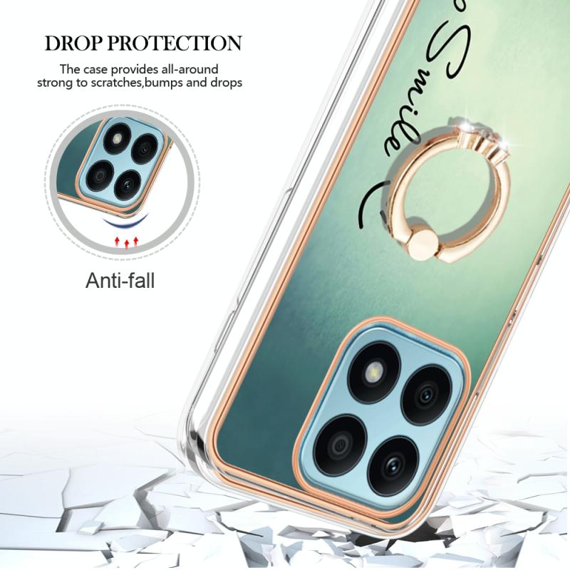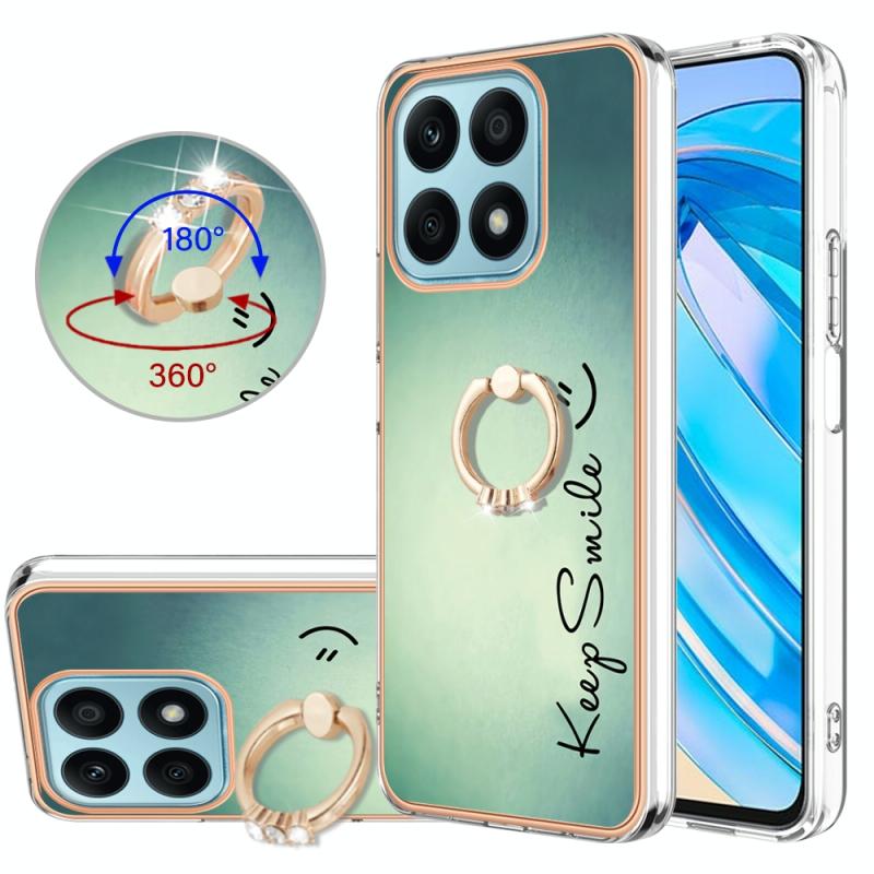 For Honor X8a Electroplating Dual-side IMD Phone Case with Ring Holder(Smile)