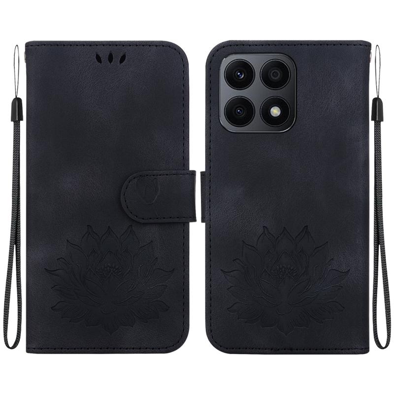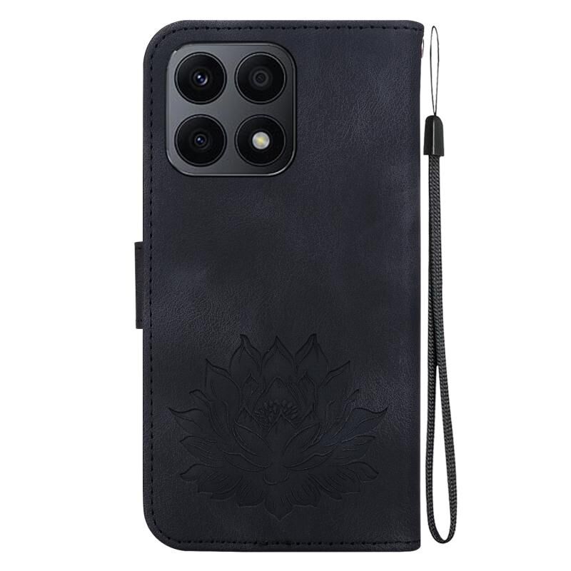 For Honor X8a Lotus Embossed Leather Phone Case(Black)