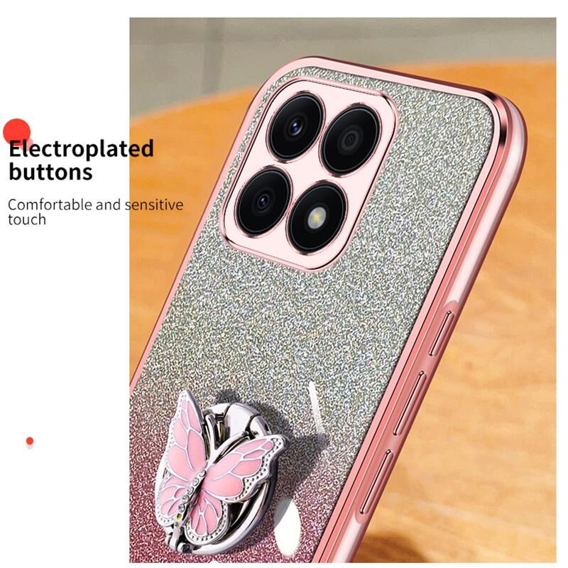 Θήκη κινητού τηλεφώνου TPU με σχέδιο πεταλούδας από glitter και διαβαθμισμένο χρώμα για Honor X8a (Ροζ)