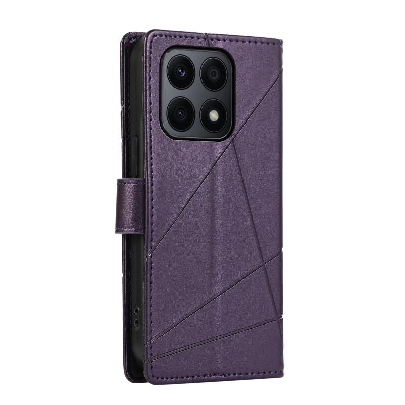 Θήκη κινητού τηλεφώνου Honor X8a PU με ανάγλυφη υφή γνήσιου δέρματος και λεπτομέρεια γραμμής (Μπλε)