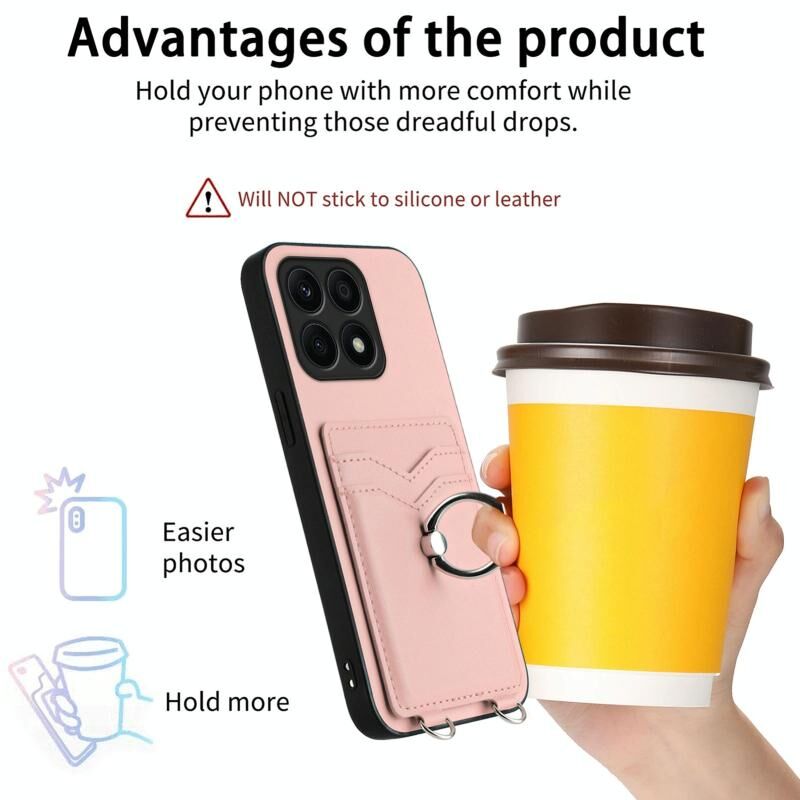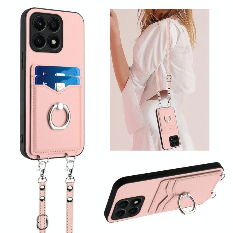 Για Honor X8a R20 Crossbody Σχοινί δαχτυλίδι κάρτα κάτοχος τηλέφωνο υπόθεση (ροζ)