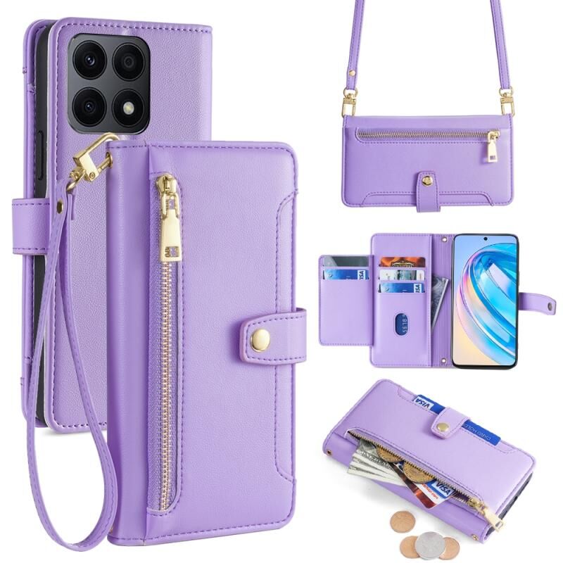 Για Honor X8a Πρόβατα Υφή Cross-body φερμουάρ πορτοφόλι δερμάτινη θήκη τηλεφώνου (Μωβ)