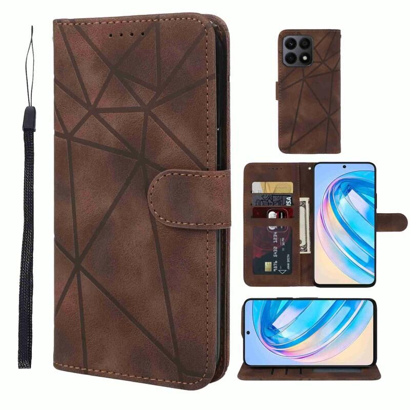 Για Honor X8a Skin Feel γεωμετρικές γραμμές δερμάτινη θήκη τηλεφώνου (Καφέ)